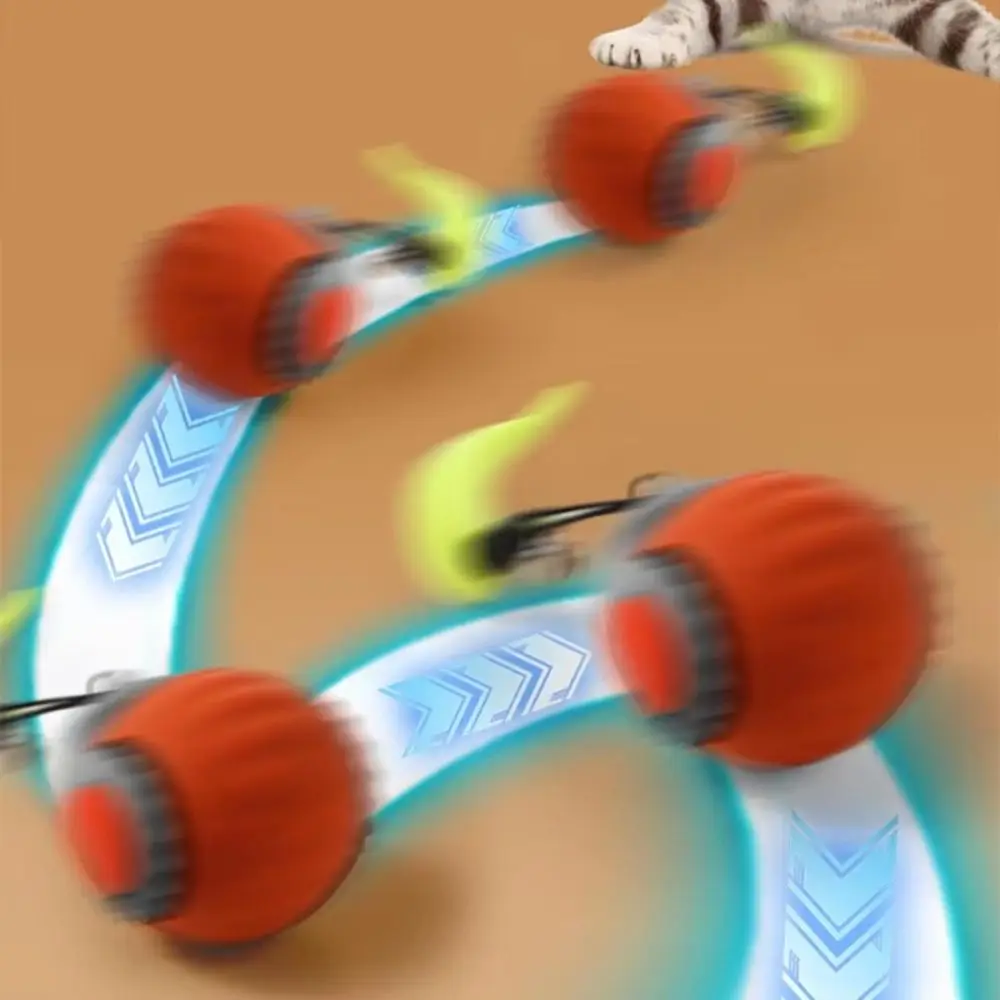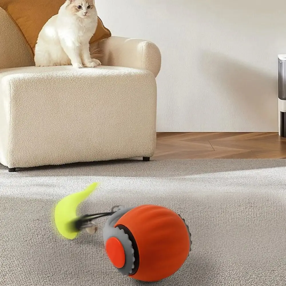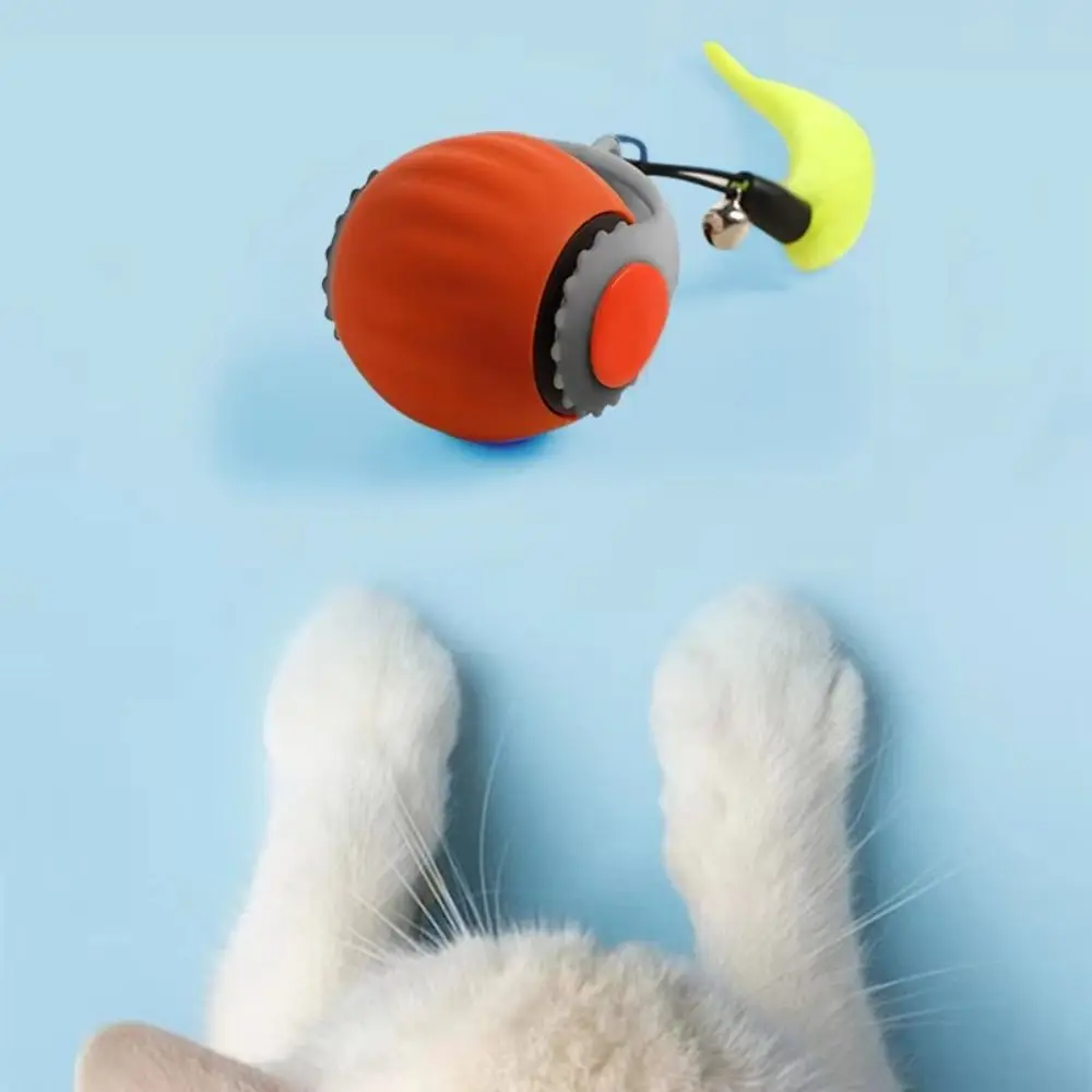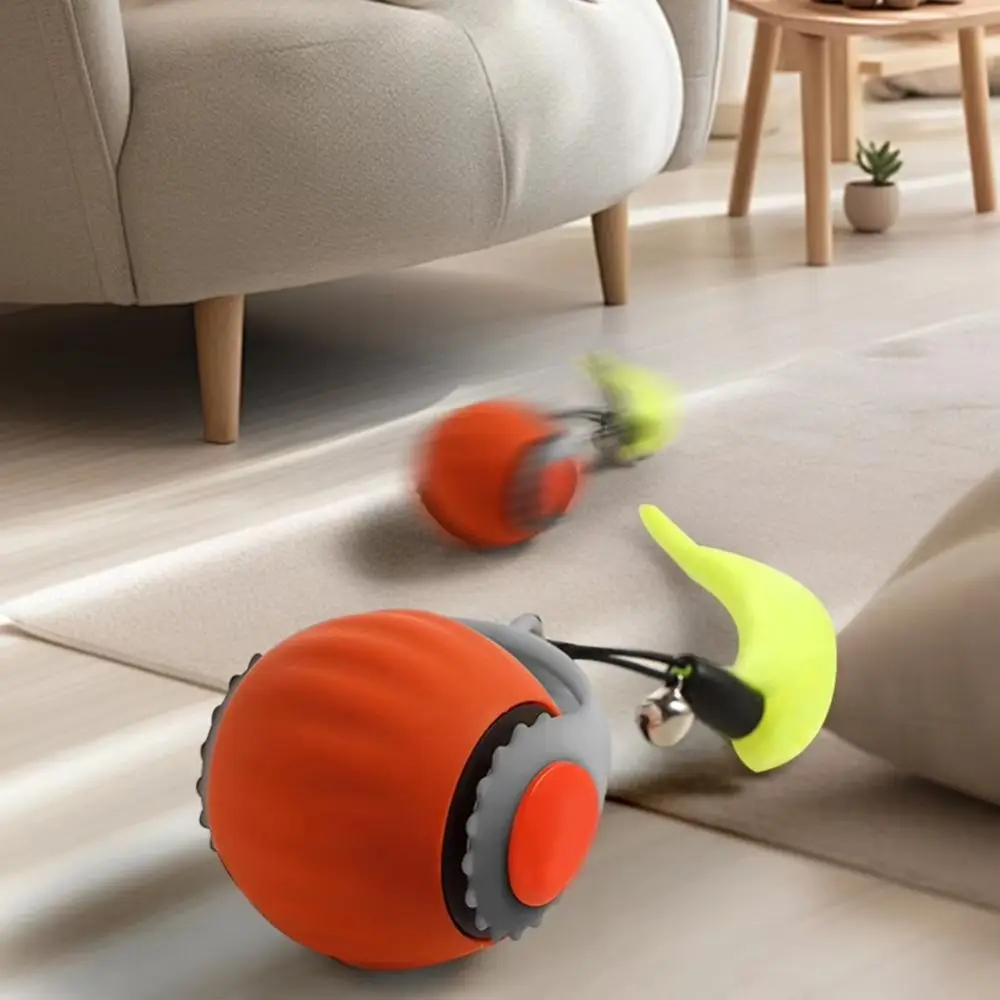 Silicone Smart Cat Toy Automatic Fast Rolling Cat Teasing Ball Toy with Faux Tail USB Rechargeable Self Moving Balls Toy